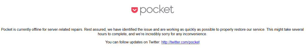 I opened up my Pocket to develop my latest “Reads” post a few minutes ago, and got the message you see in the image. For five seconds, I felt like my world had fallen apart. That’s not good.